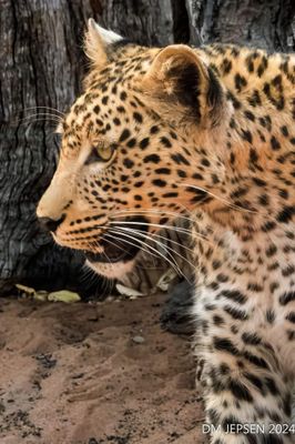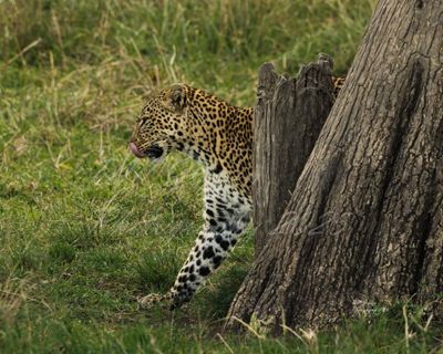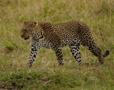 This amazing leopard has worked out what he was having for dinner, but not who. He went to ground shortly after this waiting for the right time to hunt. Maasi Masi, Kenya, Africa.