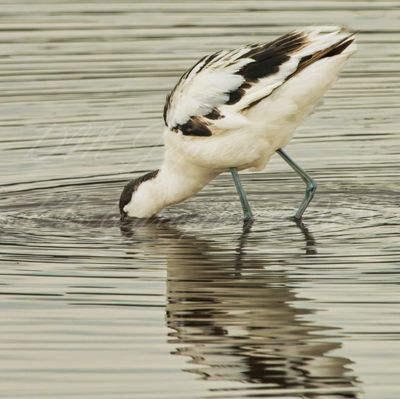Pied Avocet feeding at Lake Nakuru, Kenya, Africa.